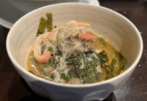 そこに蟹の身とラーメンスープをかけて食べます。