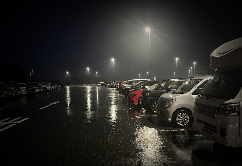 駐車場に戻り、ハミガキして就寝しました。