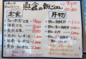 魚倉の朝ごはんメニューを眺め・・・