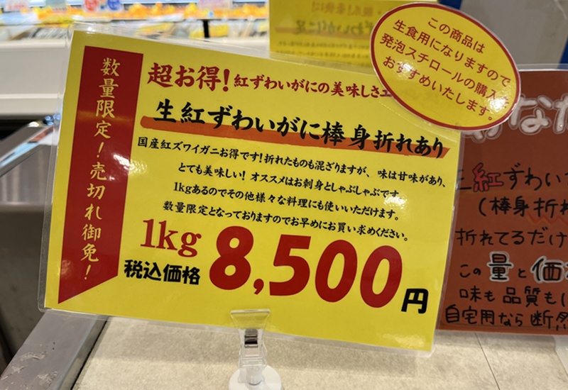 蟹刺1㎏ 8,500円。これは買いでしょう。