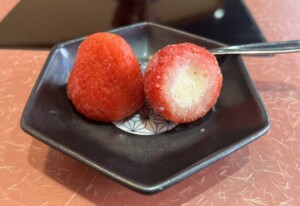 デザートはイチゴの中に練乳を詰め込んで冷凍したもの。