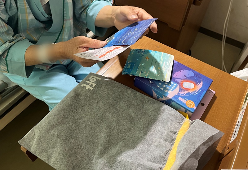 その後、夫の入院先へ行きなおさんからの品を手渡す。