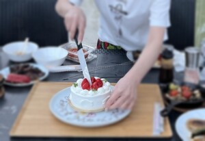 お誕生日ケーキが運ばれてきました。