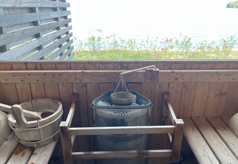 朝は寒くて服着たままサウナに閉じこもりました。