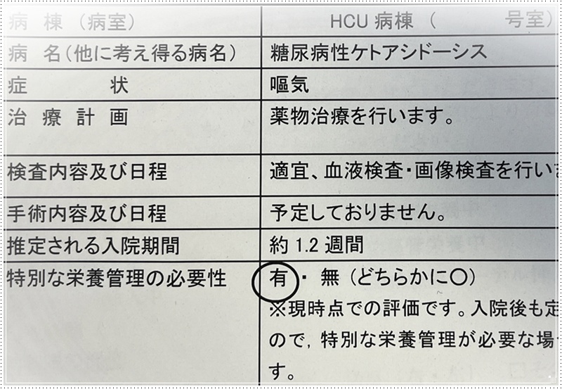 入院診療計画書を貰いました。