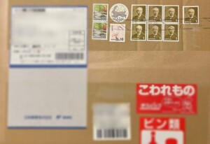荷物を受け取ったら段ボールに大量の切手が!