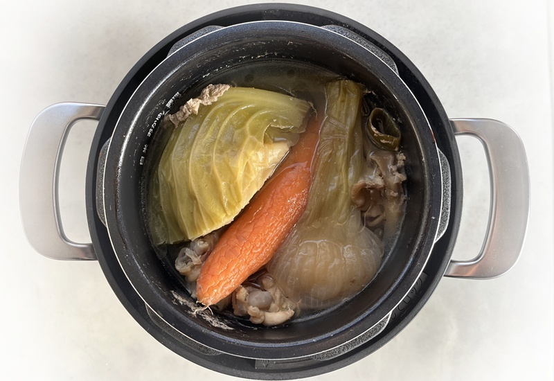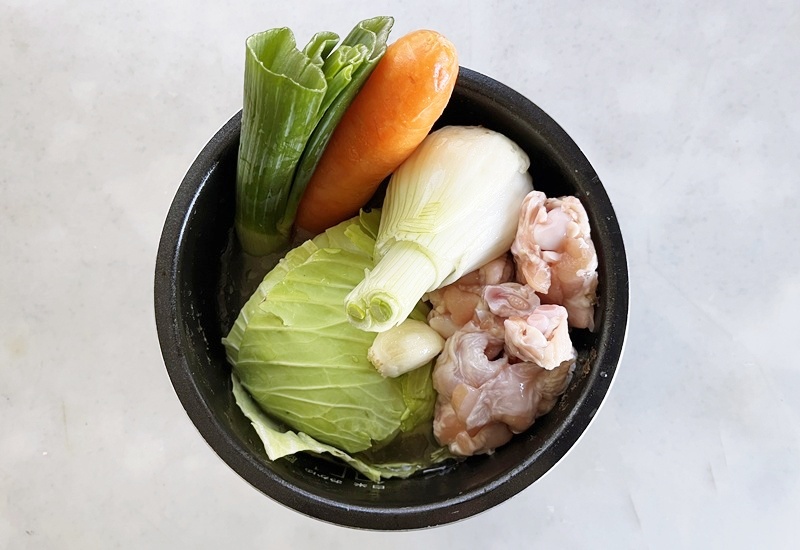 野菜と手羽と水を入れてボタンを押すだけなので