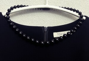 選んだのは丸玉グラデーションのネックレス。身に着けると首元に添ってすっきり見えます。長さもちょうど良くてとても軽い。