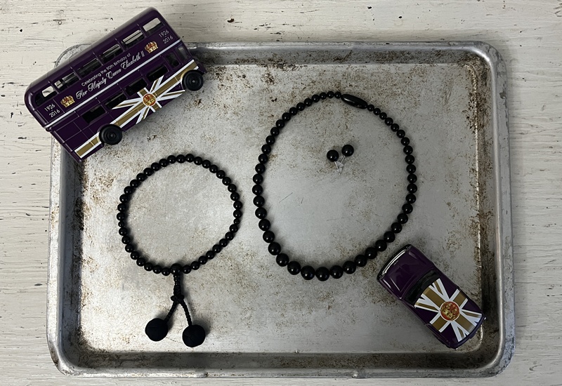 幼いころからエリザベス女王が好きで、気付いた時にはイギリス王室と日本の皇室のファンになっていました。エリザベス女王国葬の際に雅子様がジェット(黒い宝石)のネックレスとイヤリングをつけているのを見て私もジェットが欲しくなりました。そもそもジェットって何?なのですが、1億8000万年前の木が海底で化石化したものです。もうあまり採れなくなってきているので貴重です。165年前の事です。イギリスのビクトリア女王が夫を亡くした悲しみから、ずっと喪服で過ごしていました。その喪服にあせていたのがジェットです。女王が「私に会いたい人はジェットを身に付けるように」と言ったのをきっかけにジェットブームが起きました。そこでジェットがモーニングジュエリー(喪に服すジュエリー)と定められ、皇室も喪服にジェットをあわせるようになりました。王室皇室ファンの私としては、限りあるジェットを今のうちにゲットしておきたい!と思いました。しかし安っぽいものは嫌だし、かといって高級な品は身に着けるのも扱うのも疲れます。今の私にちょうど良いものを・・・と調べて数か月、ようやく身の丈にあったジェットを手に入れました。