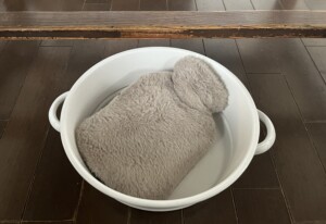 以前は2リットルを使っていたので容量が半分になったけど、お湯を沸かすのも入れるのもラクになりました。起床後に湯たんぽのお湯を洗面器に移して洗顔します。お肌に優しいぬるま湯になっているので刺激もなくいい感じ。お湯を出したらキッチンへ持って行きバケツに入れておきます。