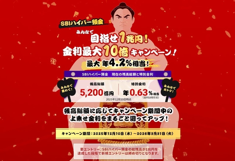 日ごろ使っている新生銀行が、昨年ハイパーすぎるキャンペーンを開始したので夫婦でハイパー預金口座を作りました。すると先月、SBIハイパー預金の総残高が目標の1兆円に達しました。